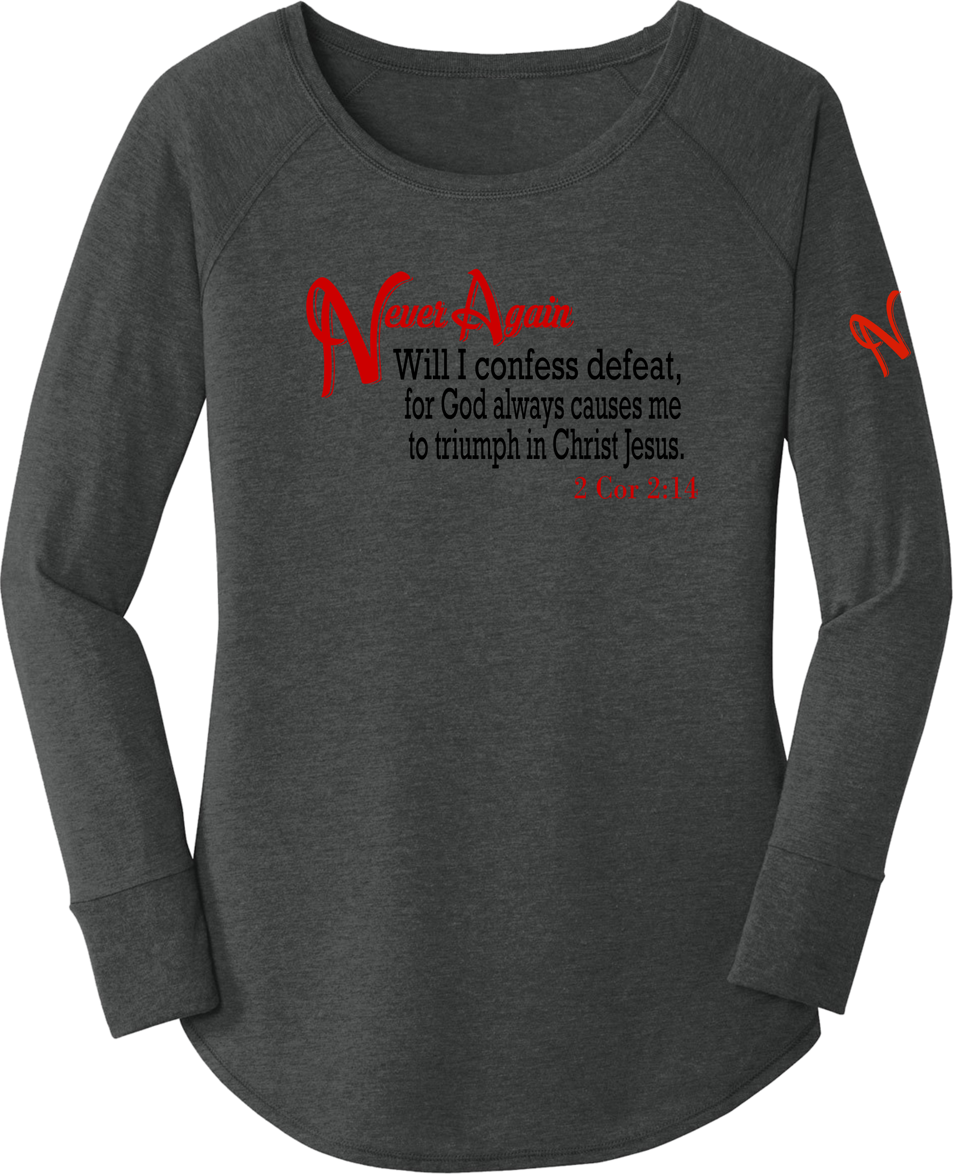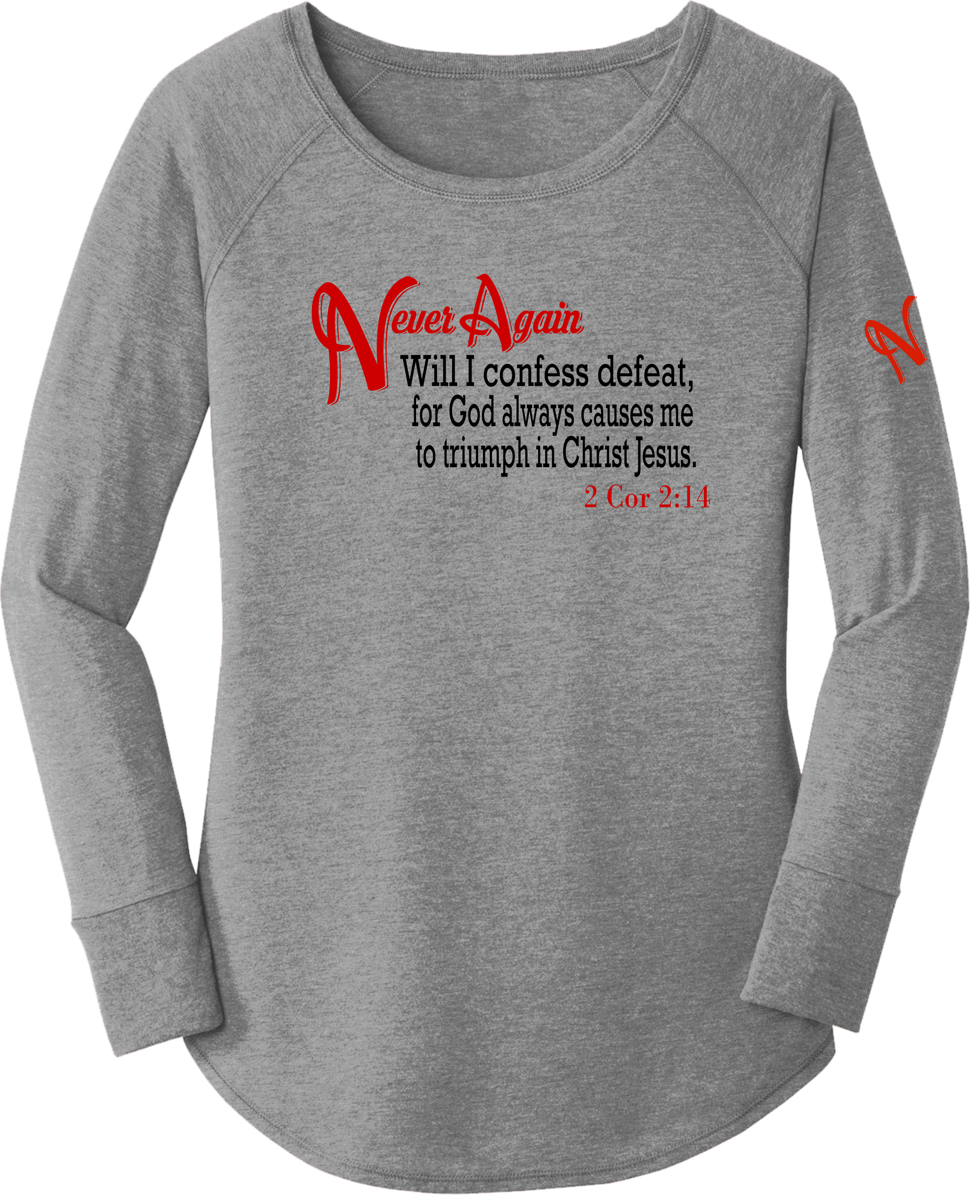 Never Again 2 Cor 214 Defeat DT132L Womens Long Sleeve